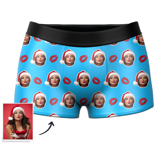 Customized Face Boxers Christmas Hat Printed Underwear with Picture